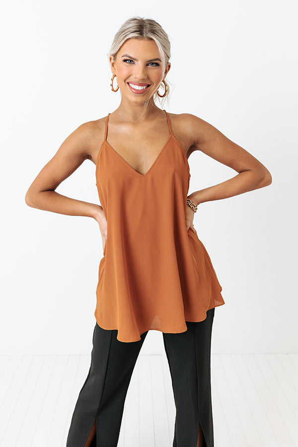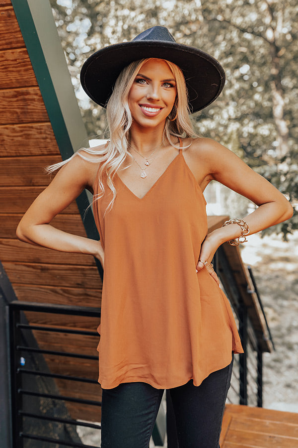 Keep your look simple but stylish in our basic camel colored 'Tour The City Shift Tank' featuring lightweight material, a v-cut neckline, adjustable spaghetti straps with a racerback fit, and a relaxed silhouette that falls into a straight hemline!