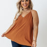 Keep your look simple but stylish in our basic camel colored plus size 'Tour The City Shift Tank' featuring lightweight material, a v-cut neckline, adjustable spaghetti straps with a racerback fit, and a relaxed silhouette that falls into a straight hemline!