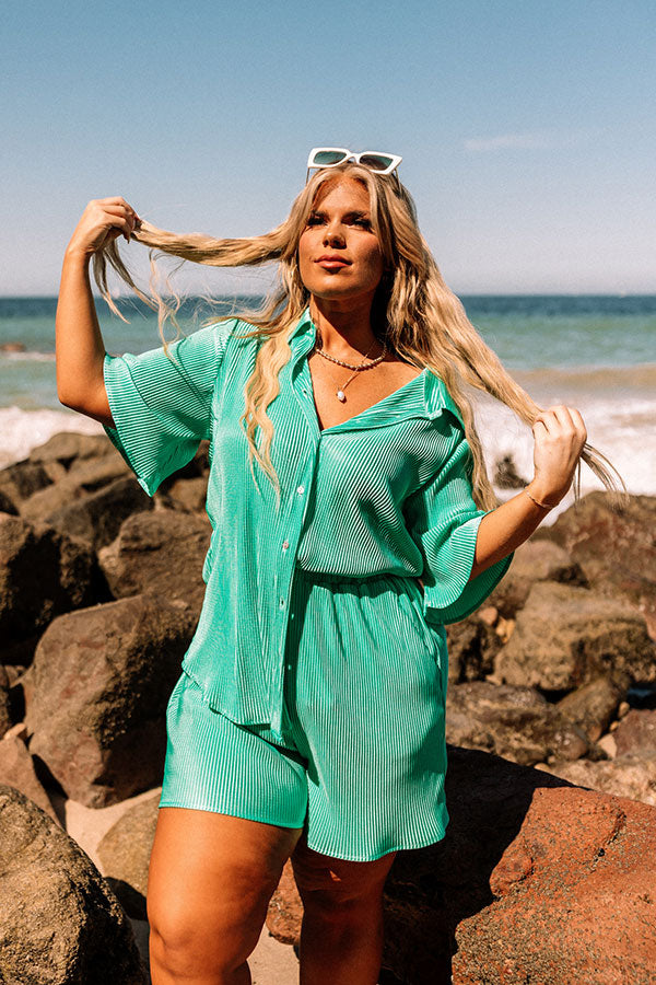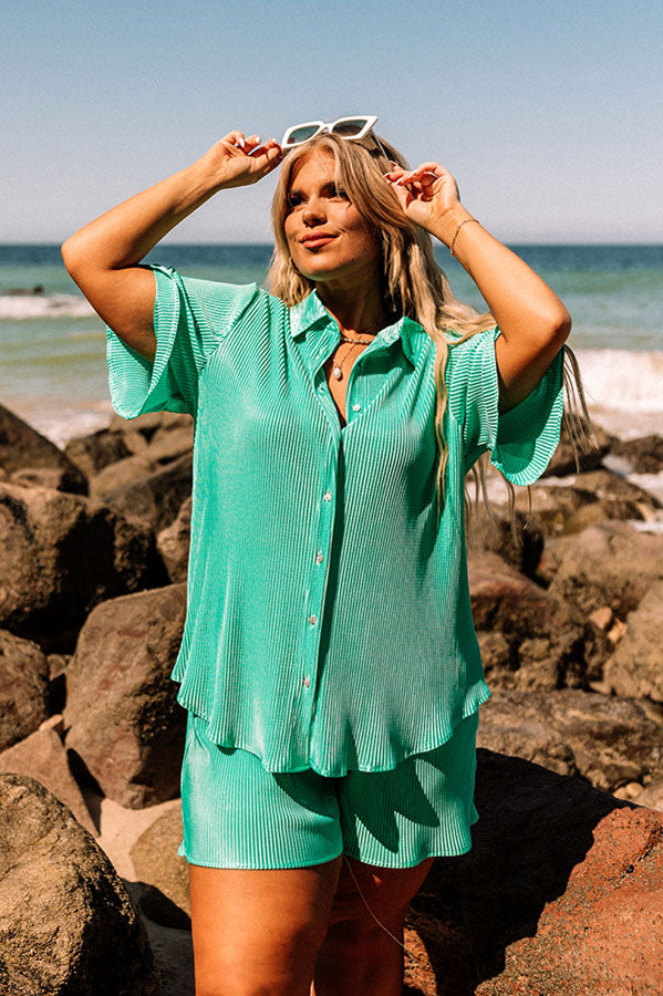 Tour The Town Pleated Top In Turquoise Curves