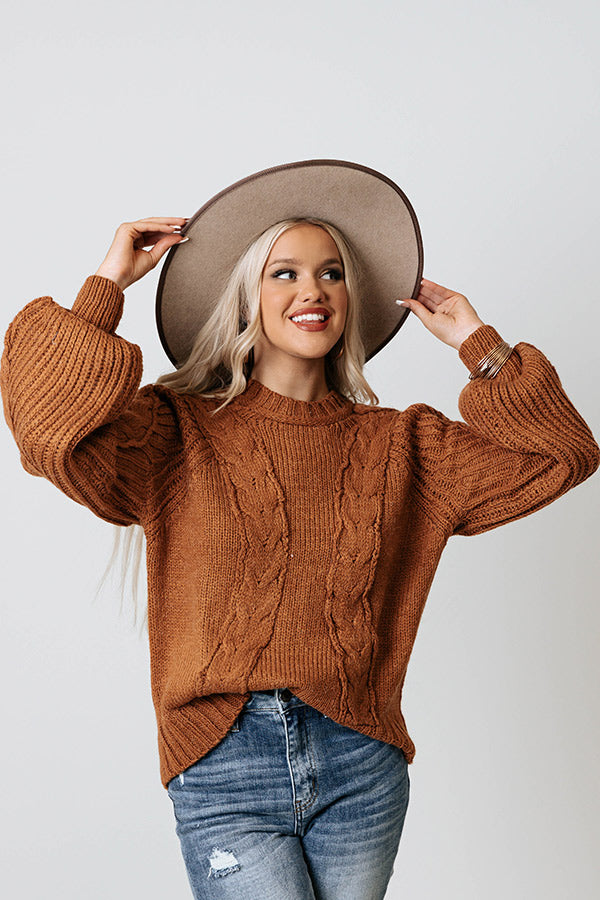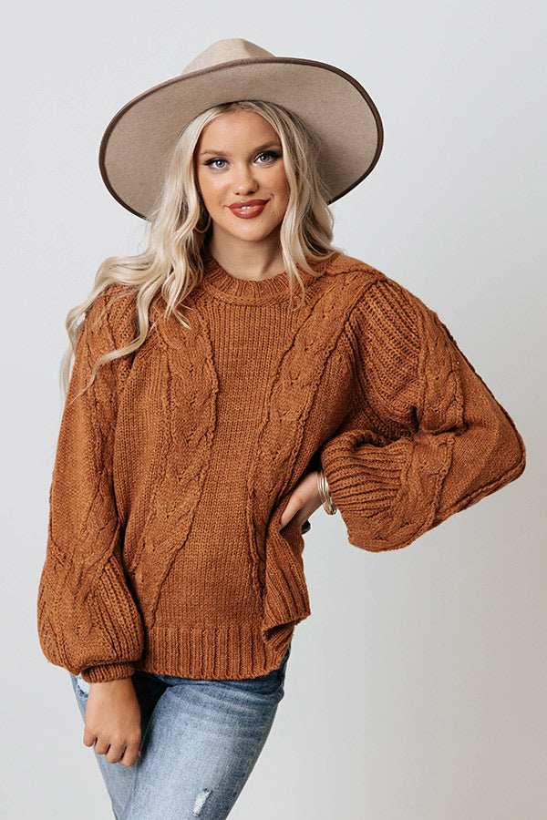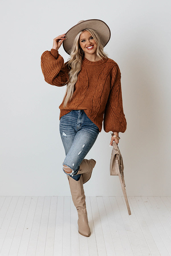 Trading Kisses Cable Knit Sweater In Pumpkin