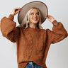 Keep warm all winter long in our pretty pumpkin colored 'Trading Kisses' sweater featuring soft and thick cable knit material, a rounded neckline, long oversized sleeves with fitted cuffs, and a slouched silhouette that falls into a straight hemline! Measurements