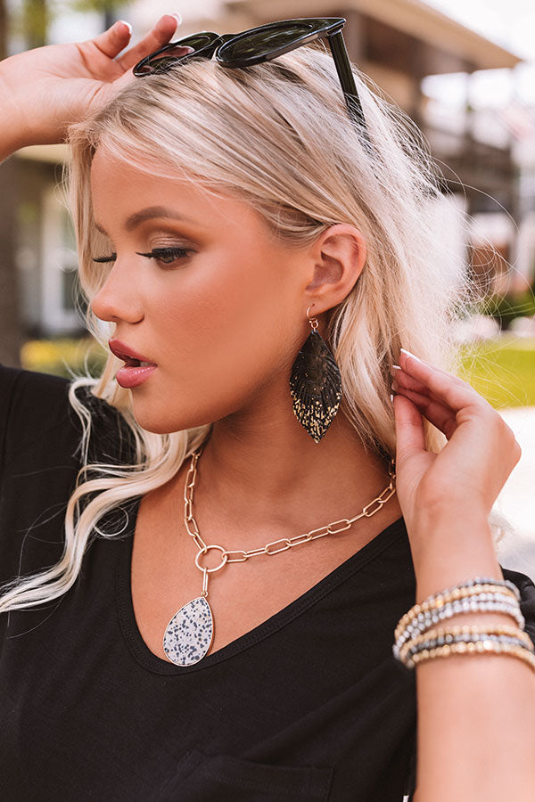 Up your street style game with our adorable "Train Into The City" statement earrings featuring black lightweight feathers with gold tip detailing!