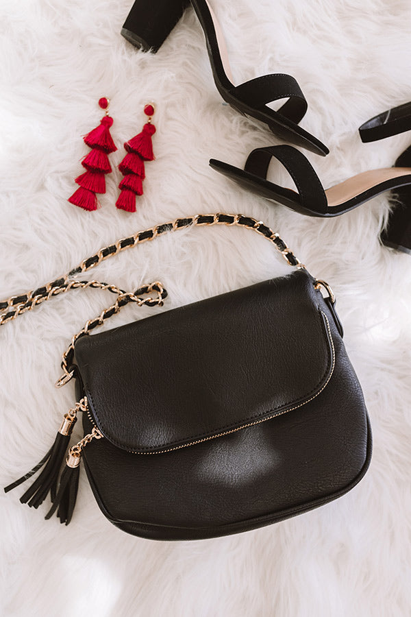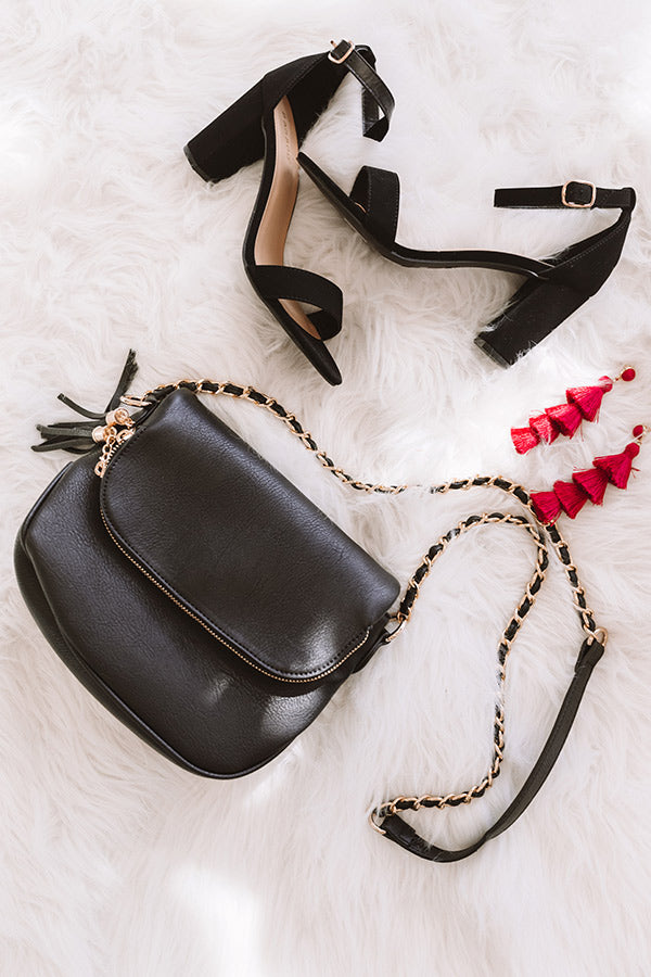 You can't buy happiness but you can buy bags and that's kind of the same thing! So, add our chic black "Travel Abroad" crossbody to your cart with its sleek faux leather material, a zip closure flap with a snap button, a gold chain link shoulder strap, accent tassel zippers, and a spacious fully lined rectangular pouch with additional inside pockets!