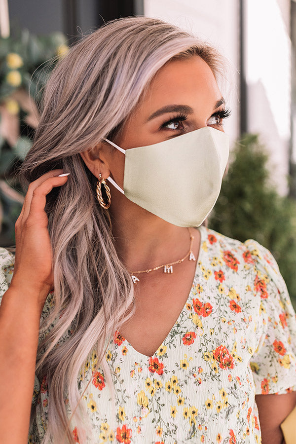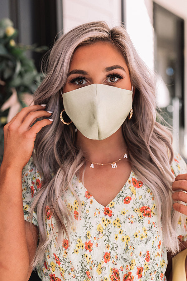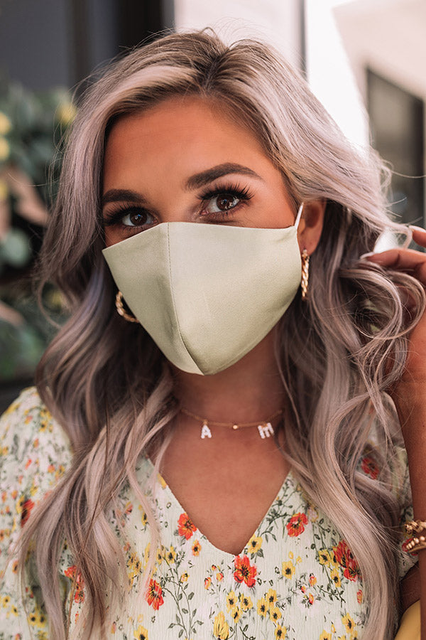 Travel around staying safe while also looking stylish in this chic pear colored face mask featuring sleek lightweight premium silk material and elastic ear loops!