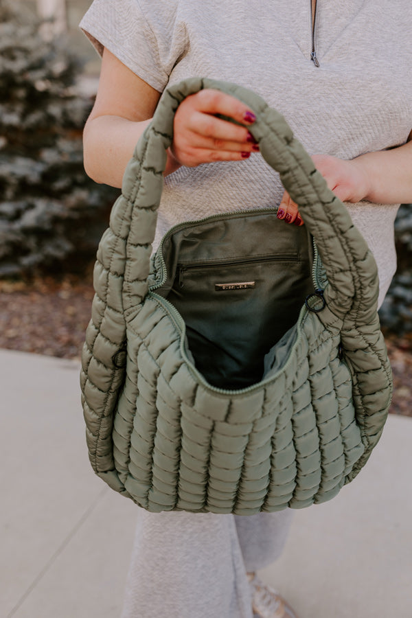 Travel Far Puffer Tote In Olive