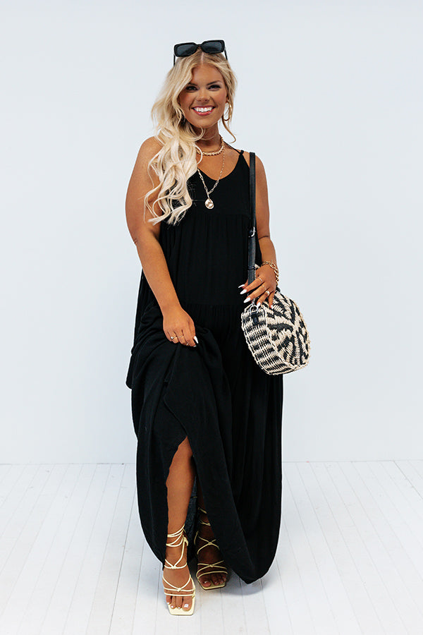 There is no better piece to pack when you travel this summer than this casual cute black plus size maxi dress featuring lightweight breezy material, a v-cut neckline, spaghetti straps that cross and tie in the back, hidden side pockets, and a draped silhouette that cascades into a straight ankle-length hemline! on products Measurements