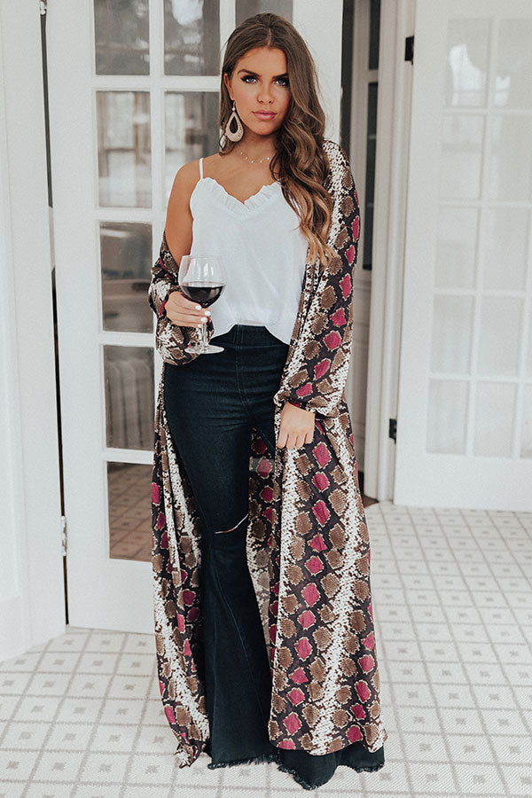 This white shift tank is for all you island girls with its lightweight layered material, spaghetti straps with a low open back, a v-cut neckline with ruffled trim detailing, and flowy bodice that falls into a straight hemline! We have styled this upscale basic under a snake print duster with some black flares for fall, but you can also wear this piece in the summer with some distressed jean shorts, our "Seaside Snake Print Platform Sandal," a neutral fringe crossbody, and our "Sonoma Sightseeing Faux Suede Fedora in Light Taupe!" Measurements