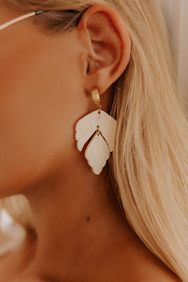 A dainty accessory, our pretty 'Tree Lined Drive Earrings' feature a gold stud and a ivory colored dangling leaf!