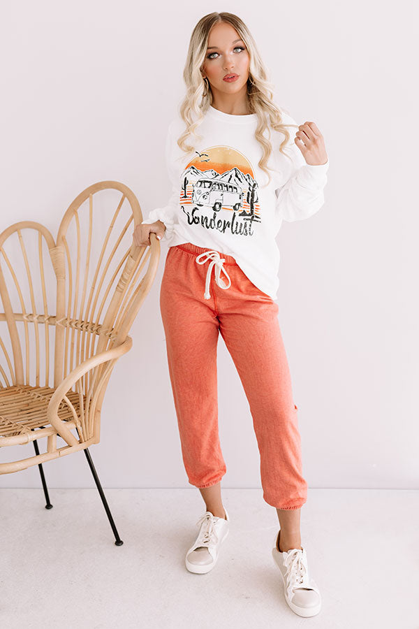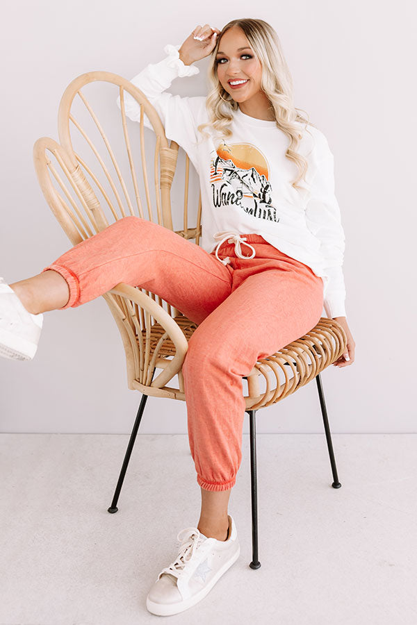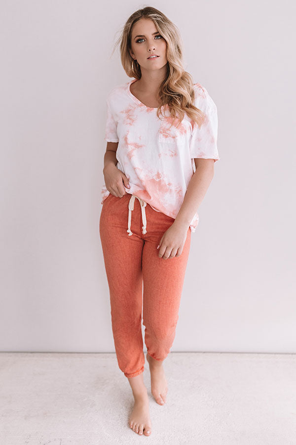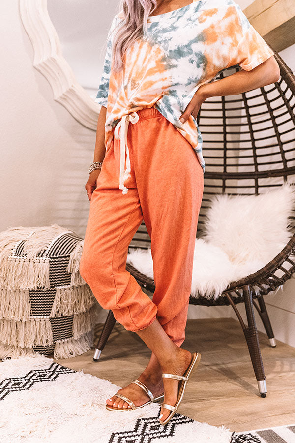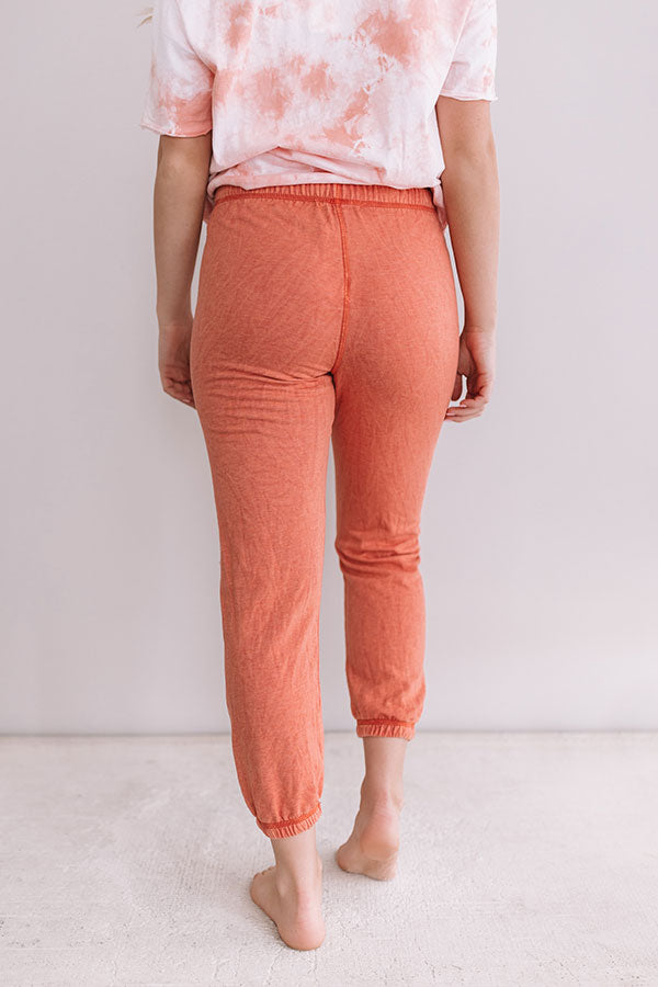 You are sure to be a "trendsetter" when you wear these cozy coral joggers featuring soft lightweight material with mineral wash detailing, an elastic waistline with a tie belt closure, and a relaxed pants silhouette that falls into fitted ankle length hemlines! We have styled these cuties with a matching sweatshirt and trendy sneakers, but you can also wear it with a basic black tank under a cropped jean jacket, "The Karlie Perforated Bootie in Black," sunnies, and "The Essential Faux Leather Backpack in Black!" Measurements