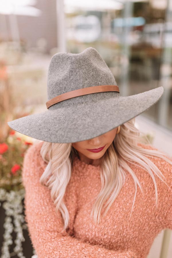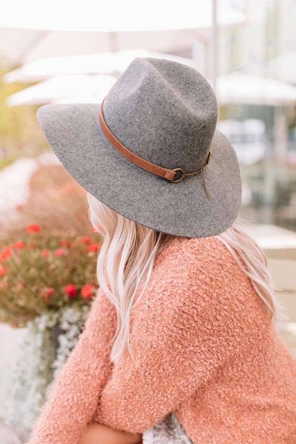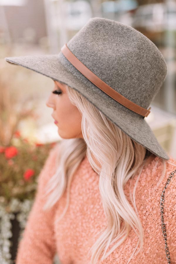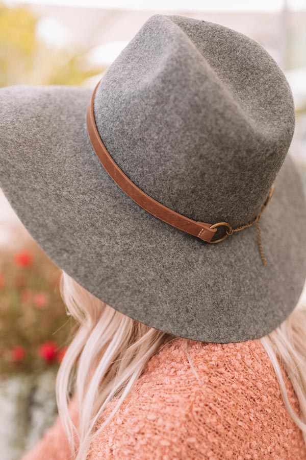 When headed on those "Tribeca travels" there is no better piece to accessorize with than this dark grey fedora with its wool material, stiff brim, and neutral accent band!