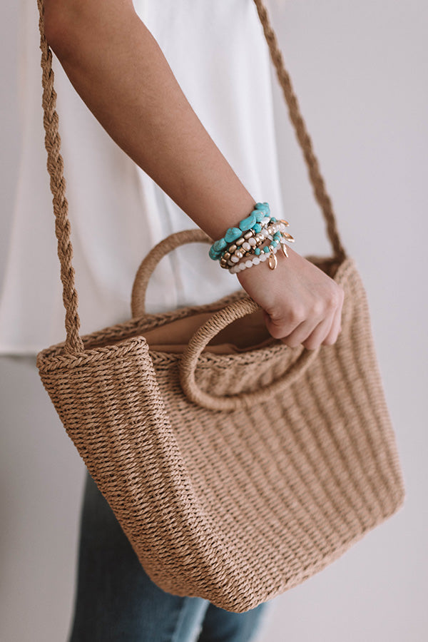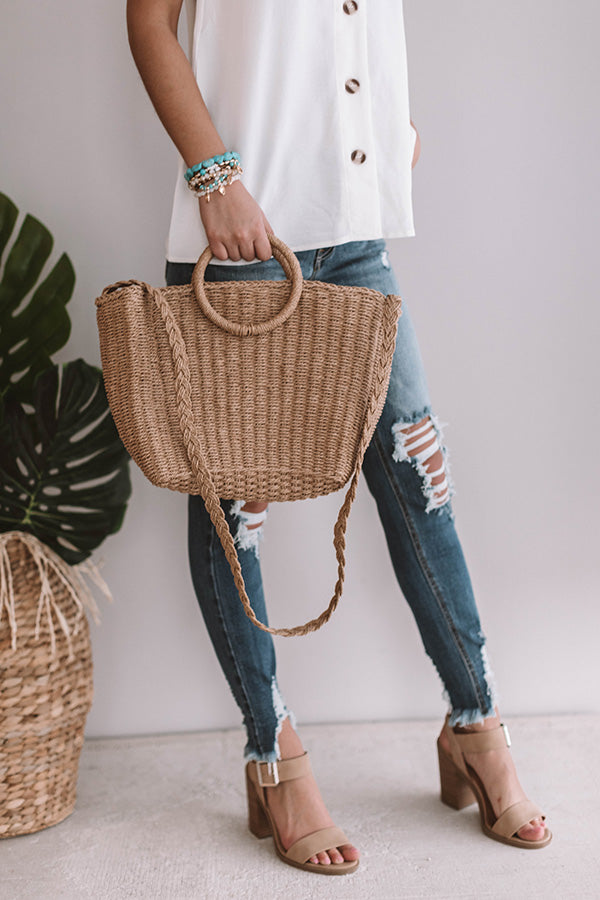 Tropical State Of Mind Woven Tote In Tan