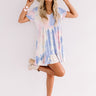 Live life colorfully in our charming "Tropical Times" dress featuring soft lightweight material patterned with blue, pink, and light yellow hued tie dye, a v-cut neckline, short loose sleeves, and an ultra relaxed babydoll silhouette that falls into a wide peplum bottom with an uneven mid-thigh length hemline! Measurements