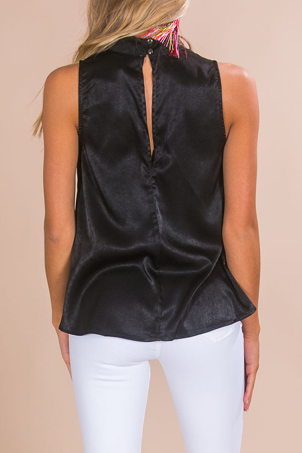 A true love story never ends and neither will your love for this satin sweetie! This satin shift tank has a v-cut mock-neckline, sleeveless bodice, and a split upper back that buttons along the back neckline! Style with skinny jeans and a sassy heel for a chic look that's perfect for your next girls night out or date night!