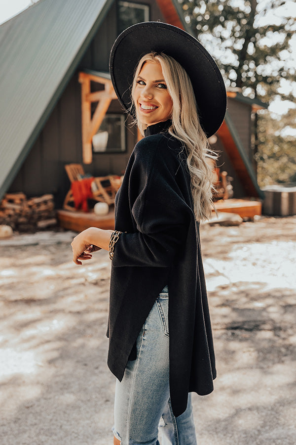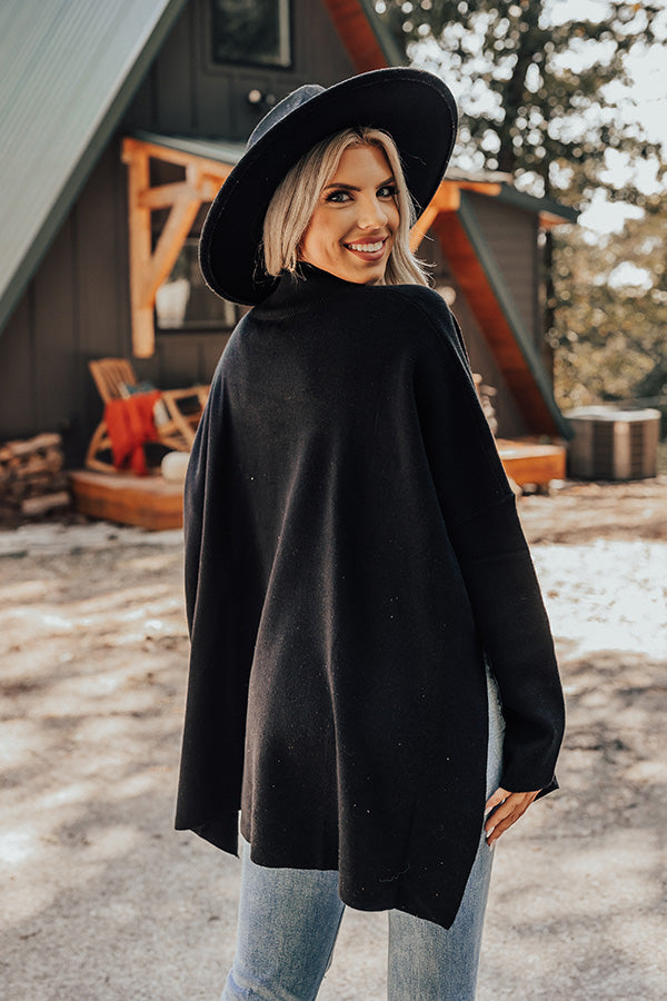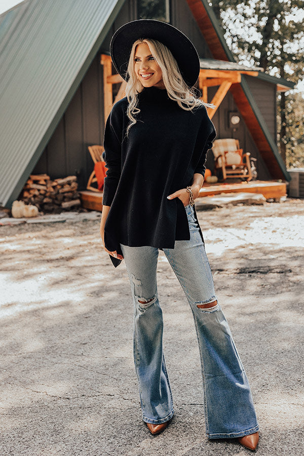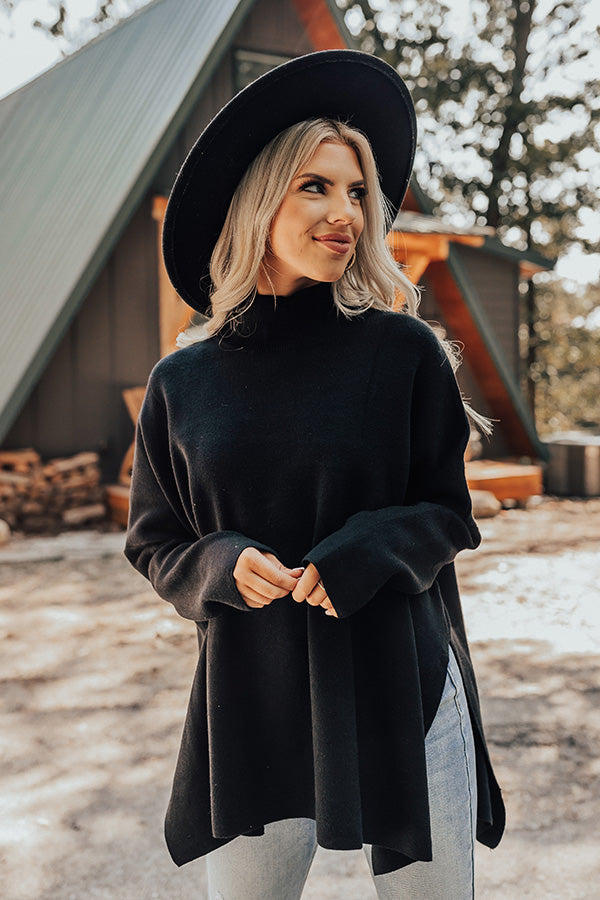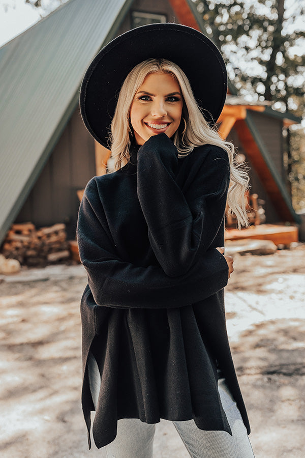 You are guaranteed to feel 'True Warmth' when you wear this lightweight shift sweater in black. Features a mock turtleneck, long sleeves with a loose silhouette that goes into a straight hemline with accent slits.
