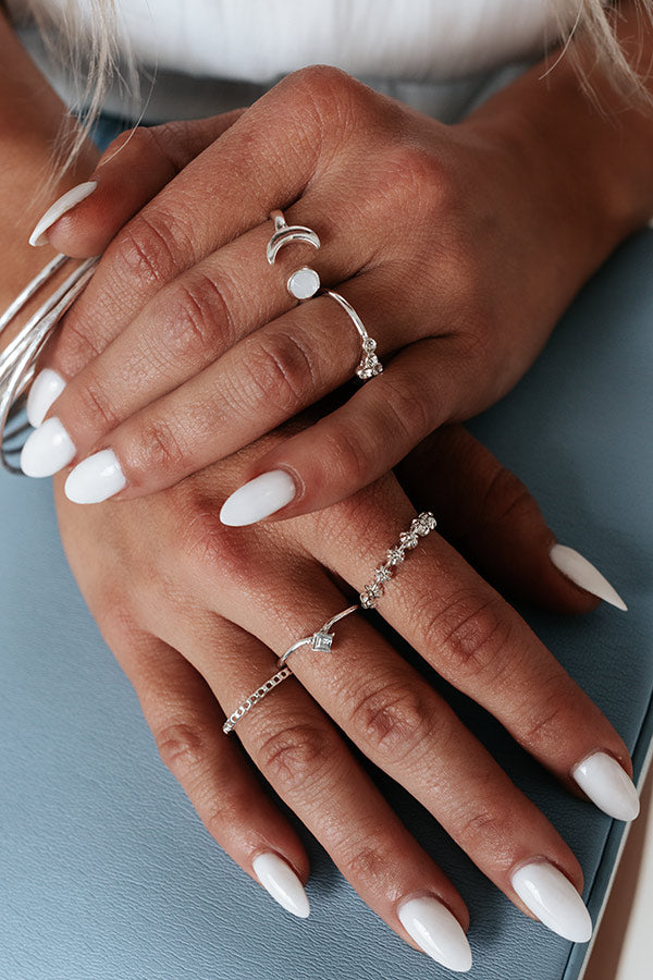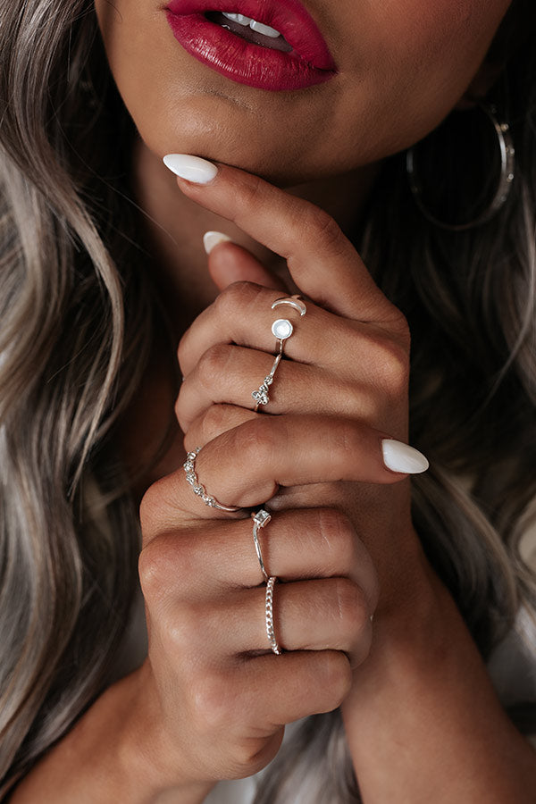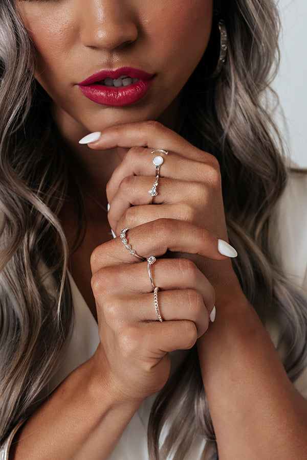 Complete your look in the daintiest of ways with our adorable 'Truly Talented Ring Set' featuring five silver rings with pearl and rhinestone detailing!