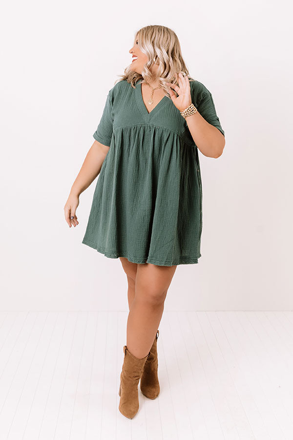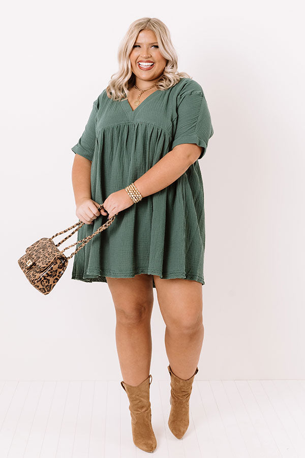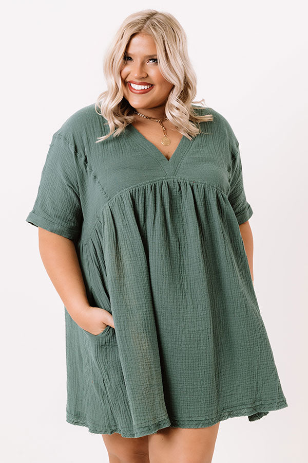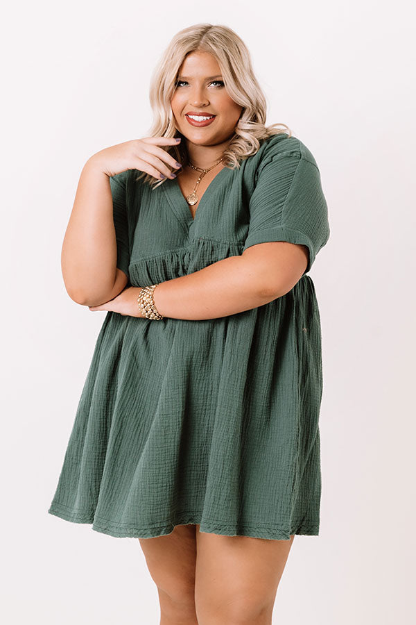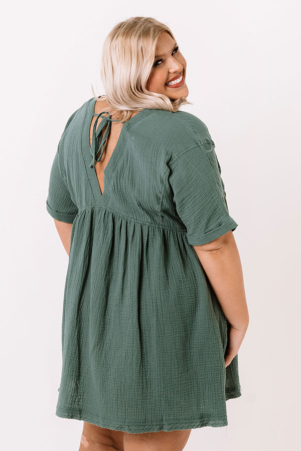 Plus Size - We know it's "truly tempting" to add this adorable green dress to your cart...so go ahead! It features soft lightweight material with subtle texturing, a deep v-cut neckline and upper back with a tie closure, loose half sleeves, and an ultra relaxed babydoll silhouette that falls into a straight mid-thigh length hemline! Measurements