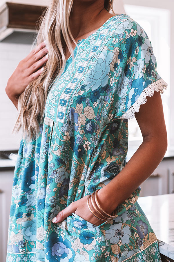 Tulum Treat Floral Shift Dress In Turquoise