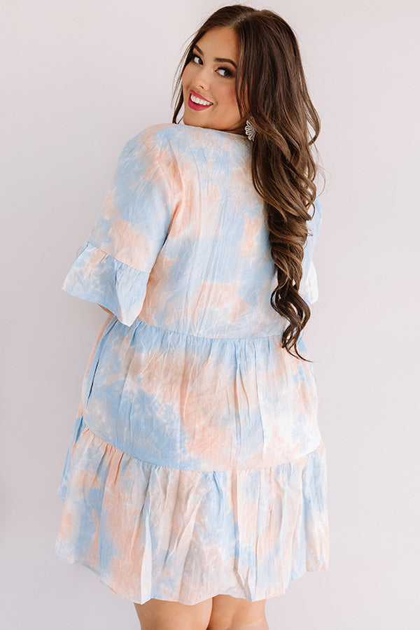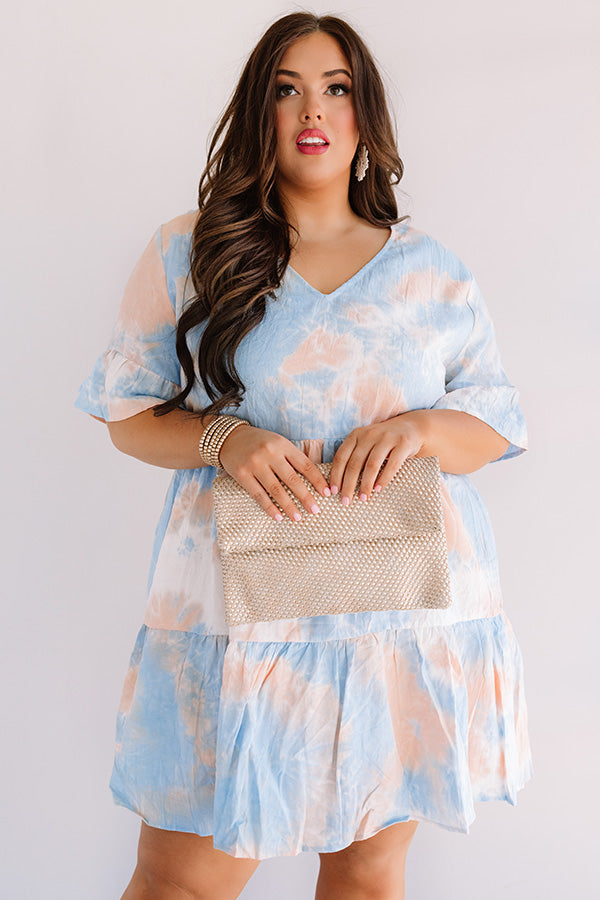 Plus Size - Lead a colorful life this summer in our adorable "Turks And Cuties" shift dress featuring lightweight breezy material patterned with a pastel orange and blue tie dye, a v-cut neckline, short loose sleeves with flared ruffle cuffs, and a relaxed tiered silhouette that falls into an uneven mid-thigh length hemline! You can style this adorable piece a variety of ways, like with a neutral platform heel and clutch, or you can wear it with "The Lela Espadrille in White" and our "Prettier By The Pacific Hat in Light Coral!" Measurements