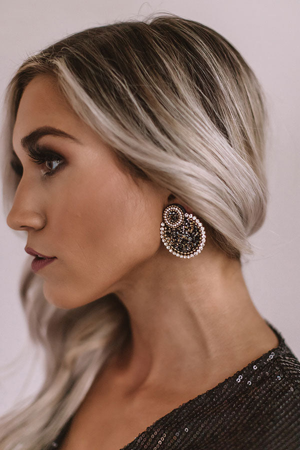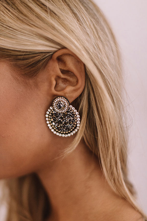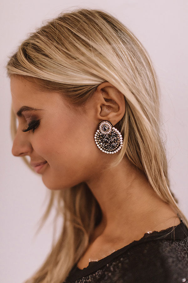 You won't need to "turn on the charm" when you accessorize with these beautiful black statement earrings featuring intricately beaded circles!