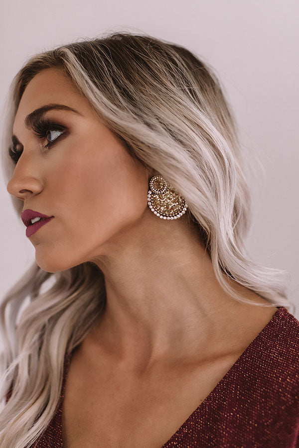 You won't need to "turn on the charm" when you accessorize with these beautiful gold statement earrings featuring intricately beaded circles!