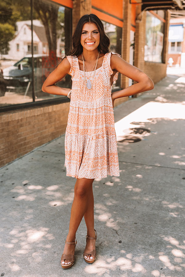 An effortless piece by itself, our darling 'Tuscan Trail Shift Dress' features lightweight material patterned with an intricate white and neutral print, a square neckline and upper back, subtle ruffled cap sleeves, and a relaxed silhouette that falls into a straight mid-thigh length hemline!