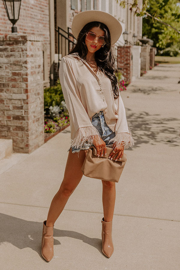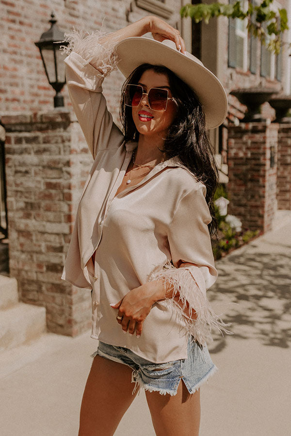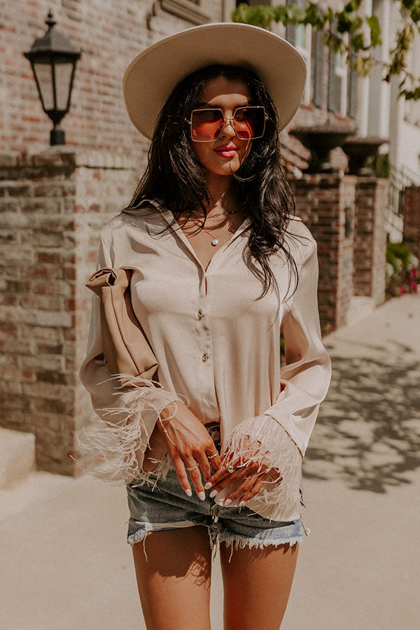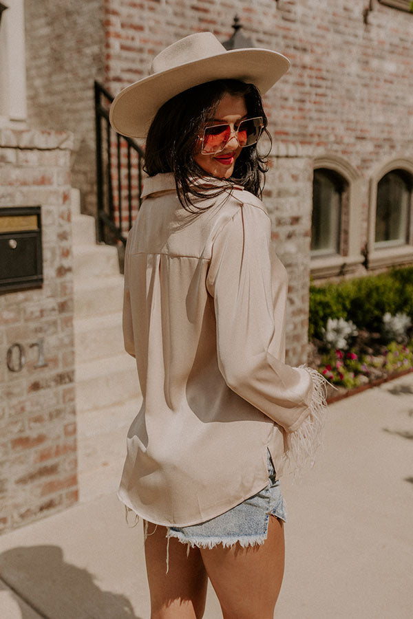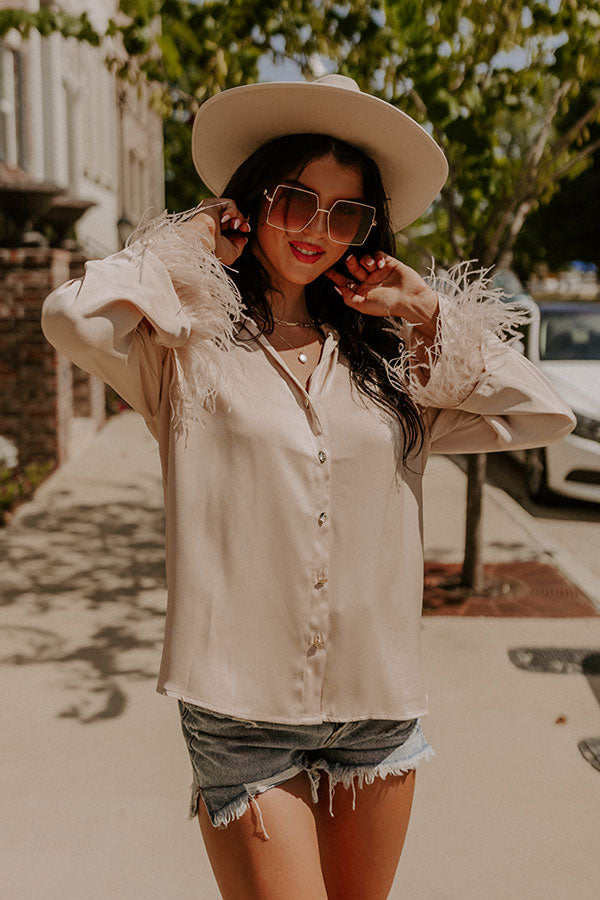 Tuscan Vibes Button Up Feather Top In Beige