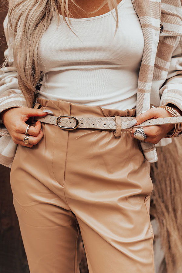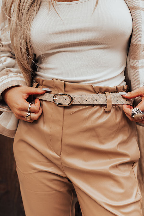 Complete your look in the prettiest of ways with our chic birch colored 'Tuscany Nights Belt' featuring a sleek woven textured strap with a gold buckle! Belt Range: 29in-37in