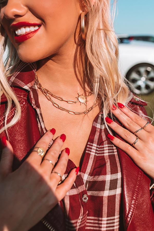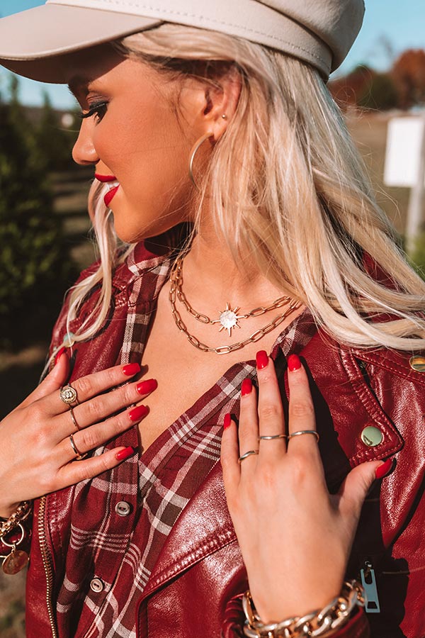 Add a touch of magic to your OOTD with this stunning necklace featuring two gold large link chains with a starburst pendant!