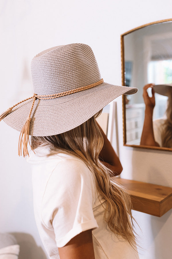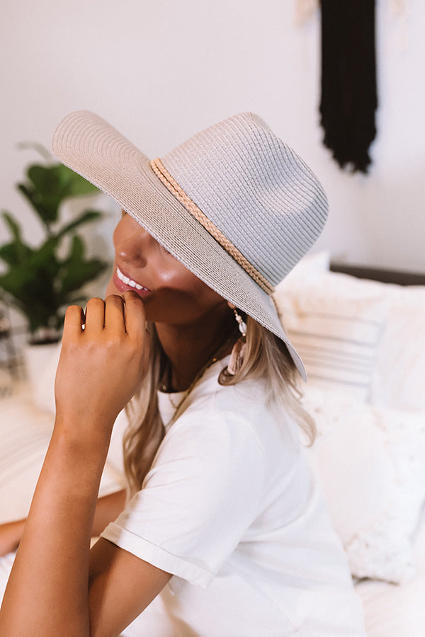 Stay shaded "under the Italian sun" in style with this darling grey hat featuring lightweight tight knit woven material, a wide floppy brim, and a braided accent band!