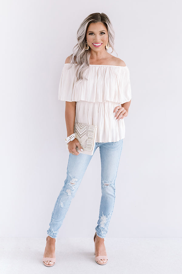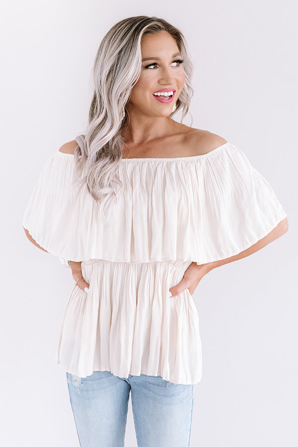 Under The Italian Sun Off Shoulder Top In Champagne