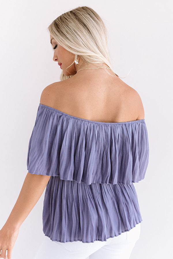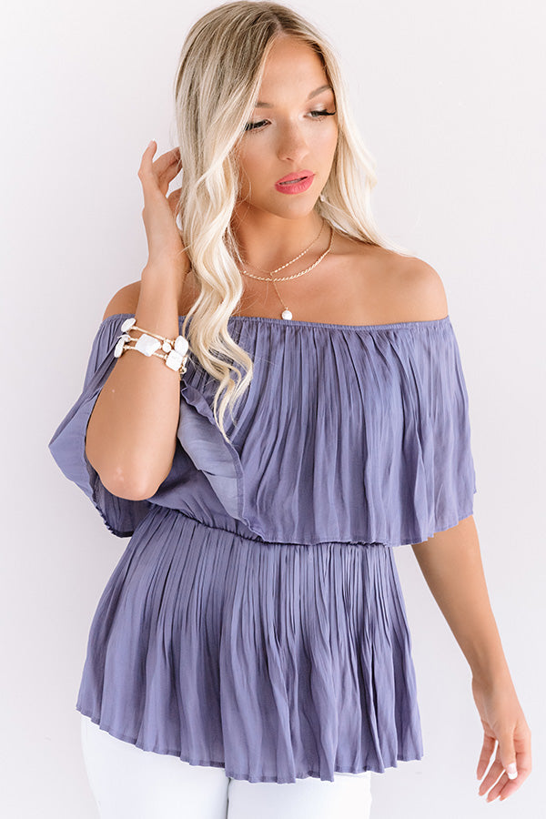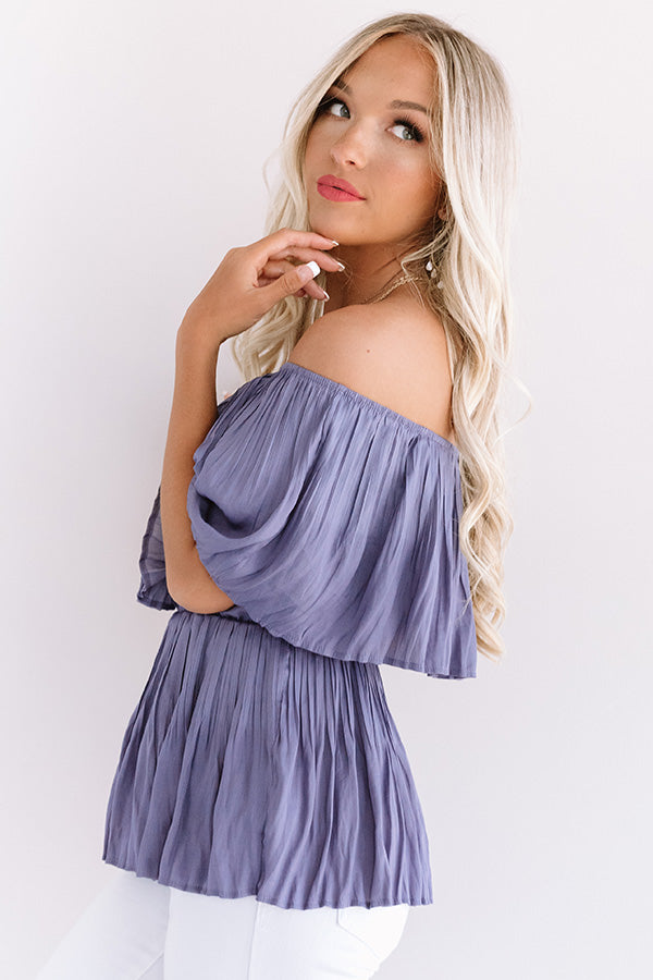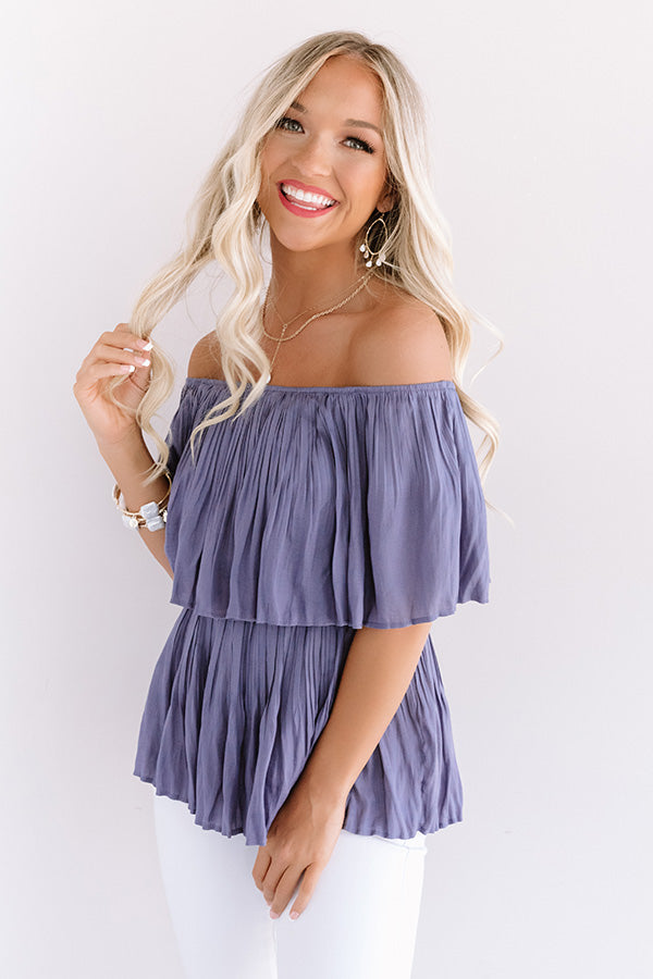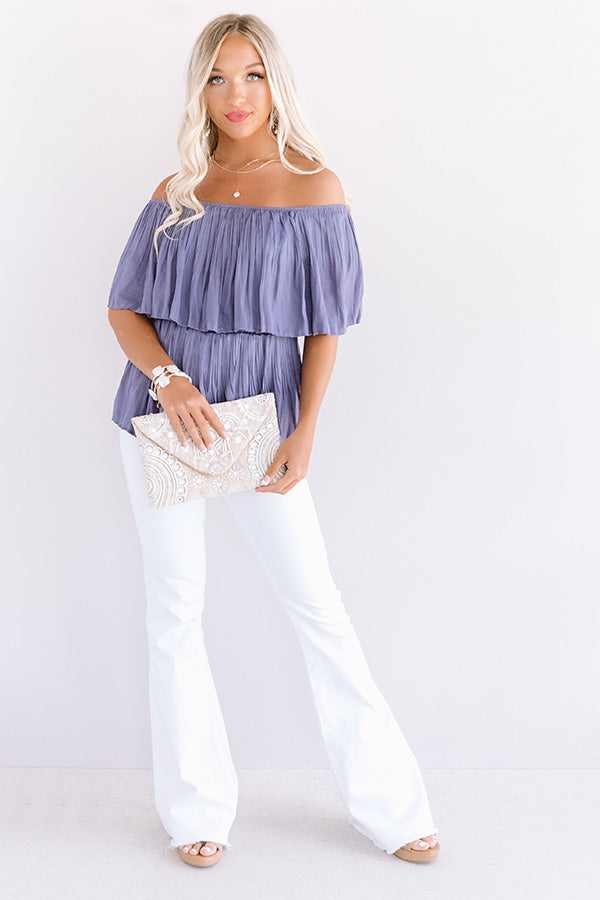 Stay cool "under the Italian sun" with this charming riverside colored top featuring lightweight breezy material with loose pleated texturing, an elastic off shoulder fit with a straight neckline, an oversized overlay bodice with short drop sleeves, and a relaxed silhouette that falls into an uneven hemline! We have styled this gorgeous piece with some white flares, neutral heels, and an embellished clutch, but you can also wear it with some distressed denim shorts, "The Bowen Wedge in Blush," and our "Sweet Pearl Velvet Headband in Blush!" Measurements
