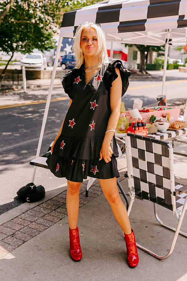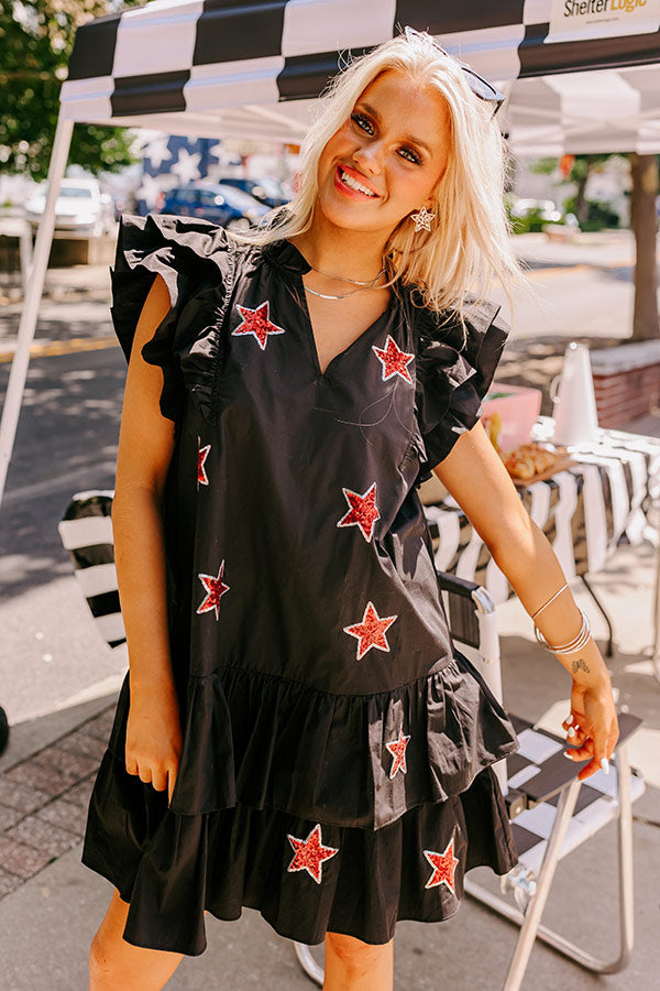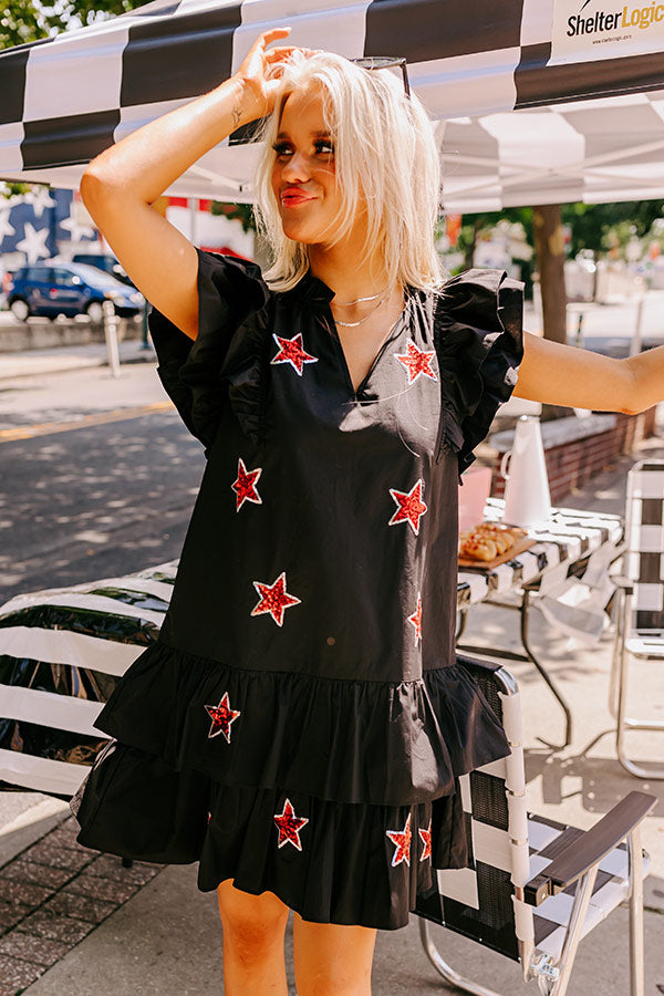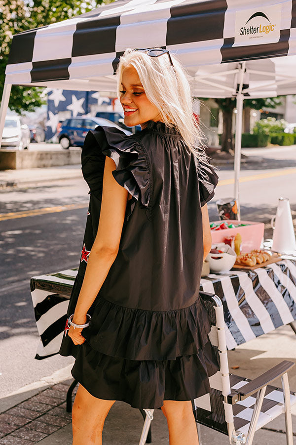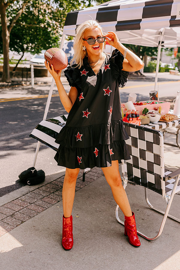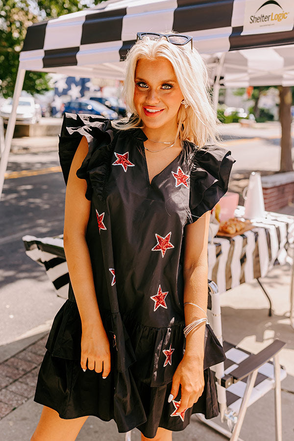 Under The Stadium Lights Ruffle Mini Dress in Black