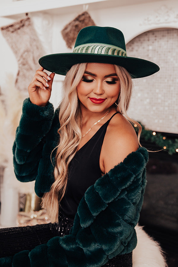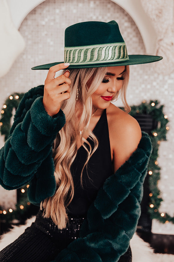 Top off your holiday style the best way with our stunning dark emerald green hued 'Undercover Love' fedora featuring lightweight wool material, a stiff 4-inch brim, and a wide striped accent band!