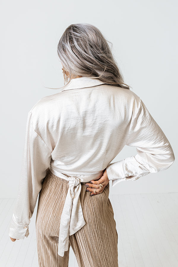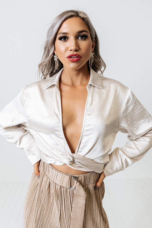 Unseen Beauty Satin Tie Top in Champagne