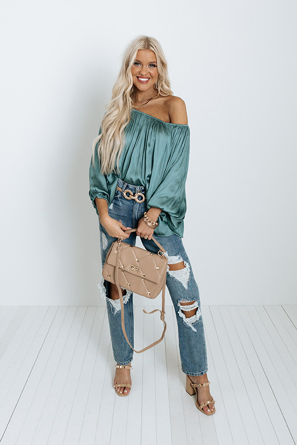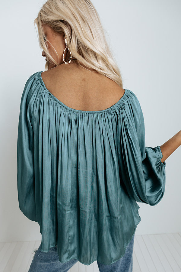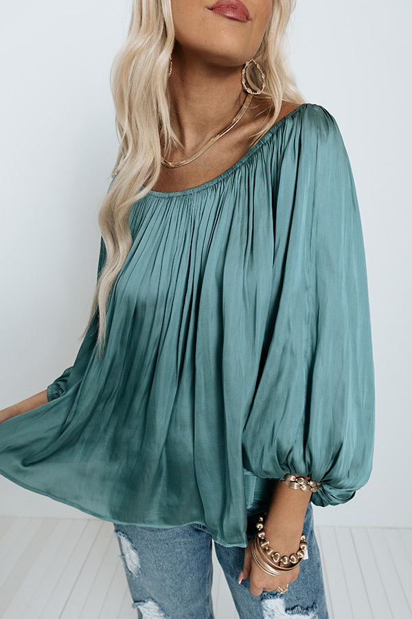 Unspoken Moment Satin Shift Top In Light Teal