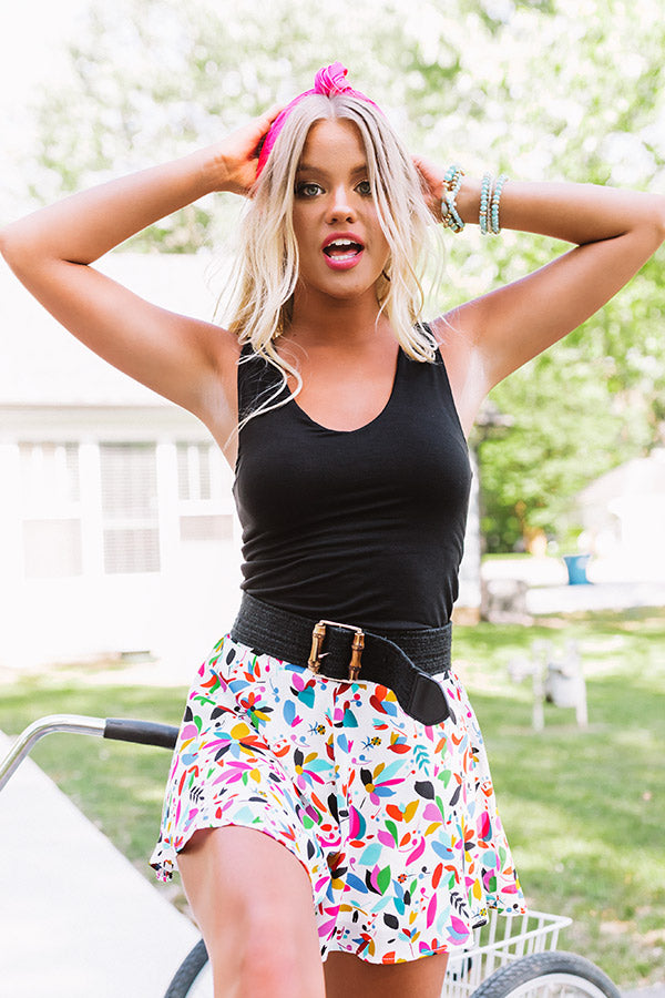 Diversify your wardrobe basics with this casual cute black "Up All Night" top featuring lightweight material, a scooped neckline, 1-inch sleeveless shoulder straps, and a form fitting silhouette that falls into a straight cropped hemline! You can style this versatile piece a variety of ways, like with some eye-catching shorts, a statement belt, and a hot pink wedge and hair scarf, or it can be worn layered under "The Fashion District Cardigan" with some distressed ankle skinnies, "The Tulia Espadrille in Cheetah Print," sunnies, and our "Cambridge Kisses Faux Leather Tote in Black!" Measurements