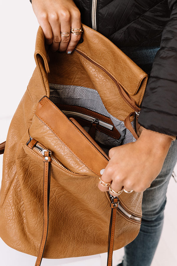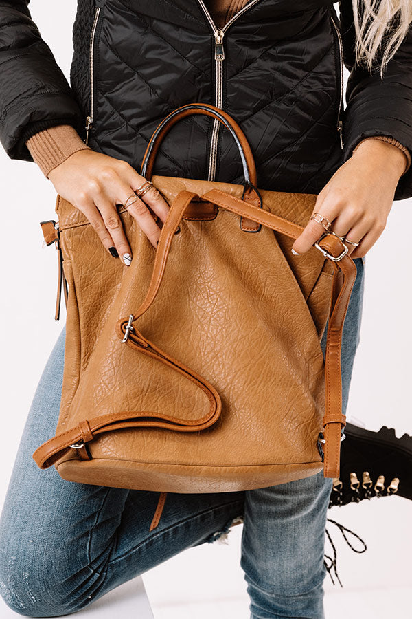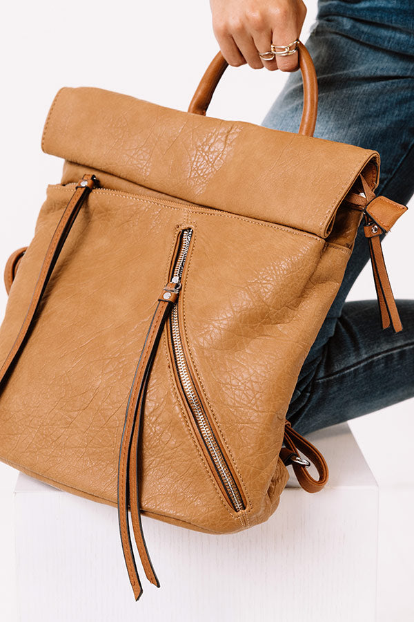 Up For Adventure Faux Leather Backpack In Brown