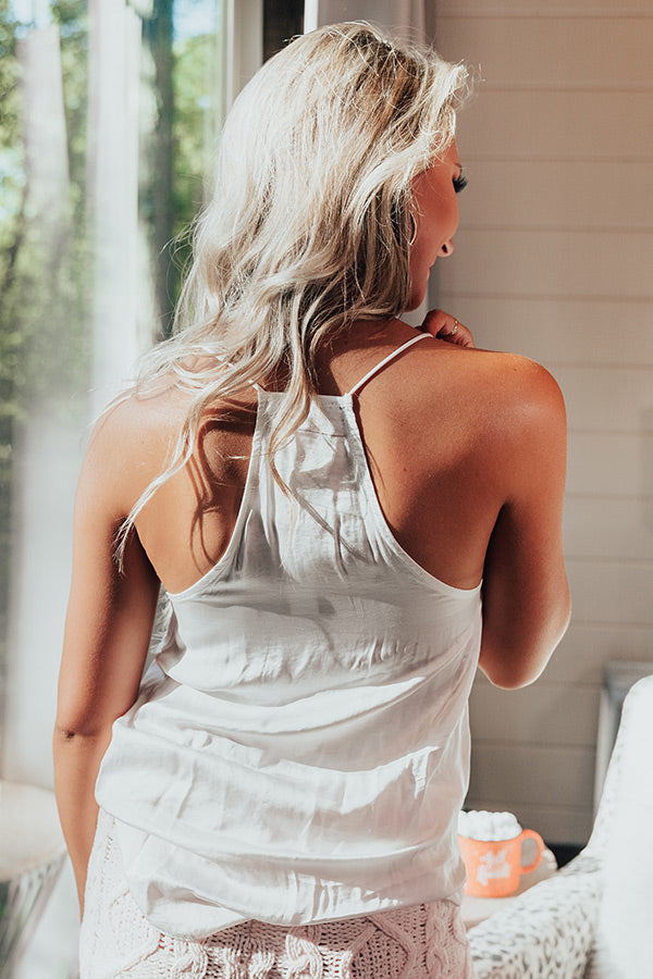 Upbeat Beauty Lace Trim Tank In White