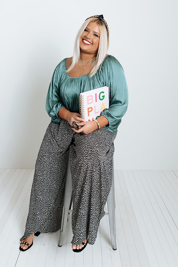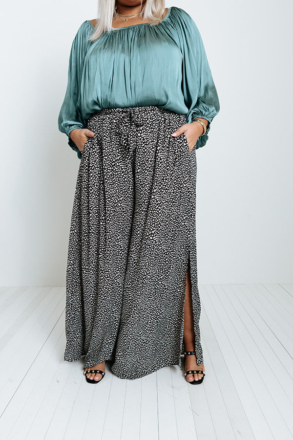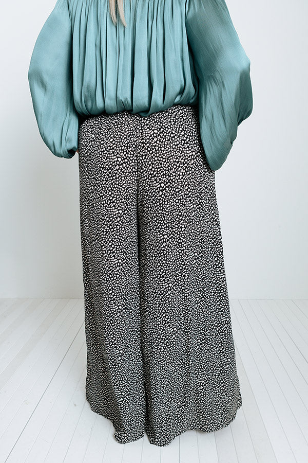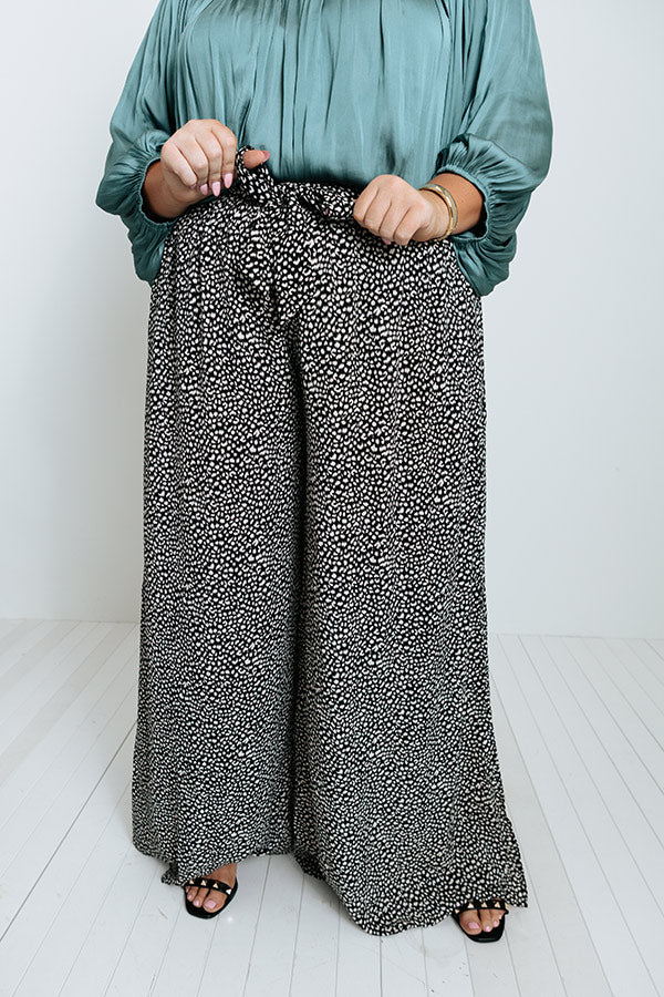 Arrive at the office looking chic in our flattering plus size black 'Upbeat Playlist' pants featuring lightweight and breezy material patterned with a small white spotted print, a high elastic waistline with a tie belt, hidden side pockets, and an ultra relaxed silhouette that cascades into straight ankle-length hemlines with accent side slits! Measurements