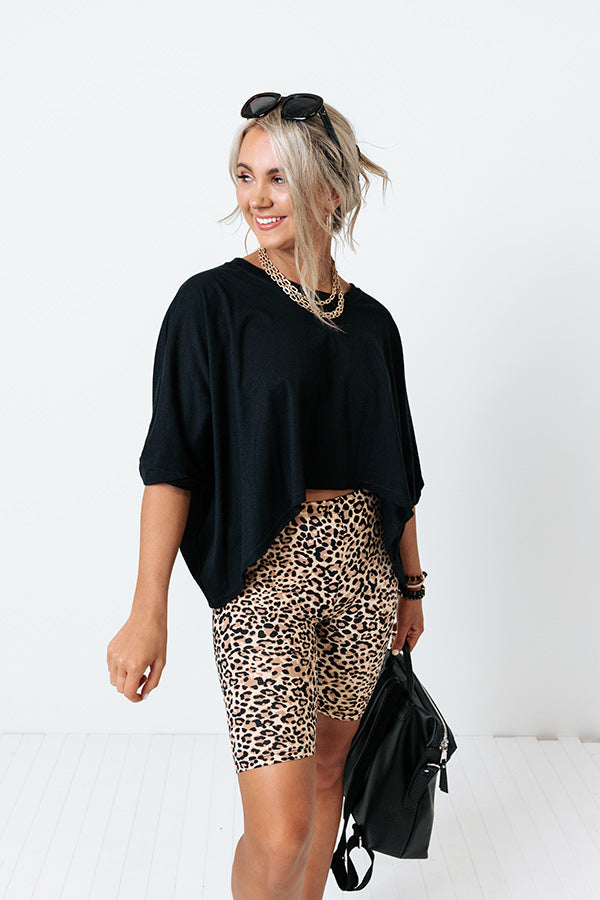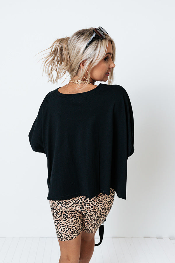 Put a little pep in your step with our basic black 'Upbeat Style Crop Top' featuring soft lightweight and flowy material, a high rounded neckline, short loose sleeves, and an oversized silhouette that ends in a straight cropped hemline! Measurements