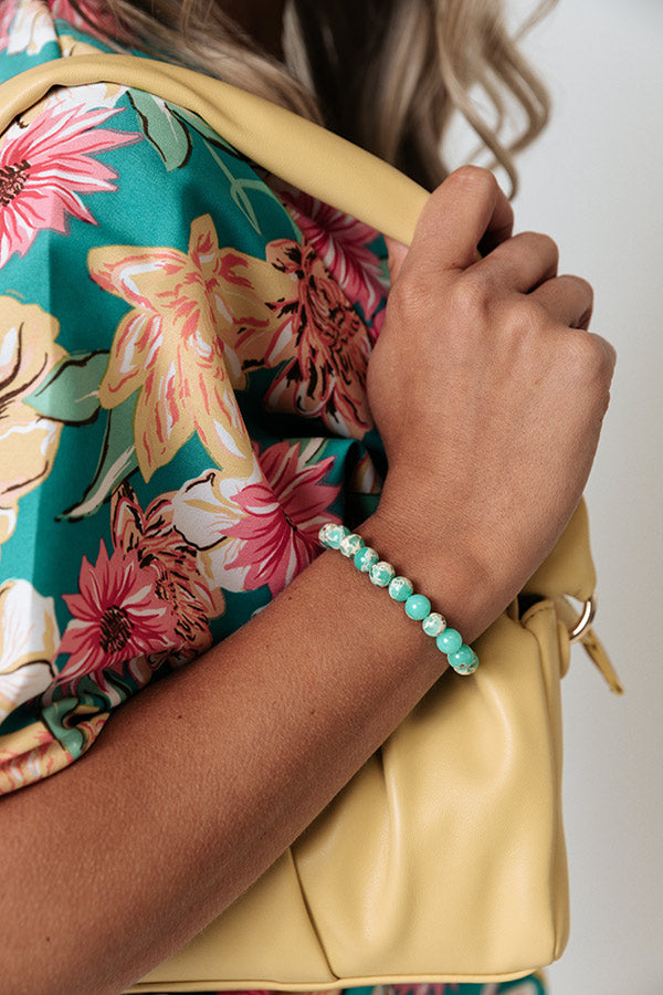 Add an upbeat touch to any look with this stylish bracelet featuring a stretchy silhouette with semi precious ocean wave colored beads!