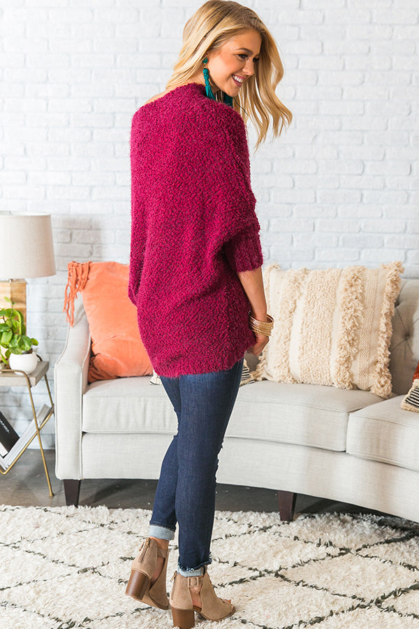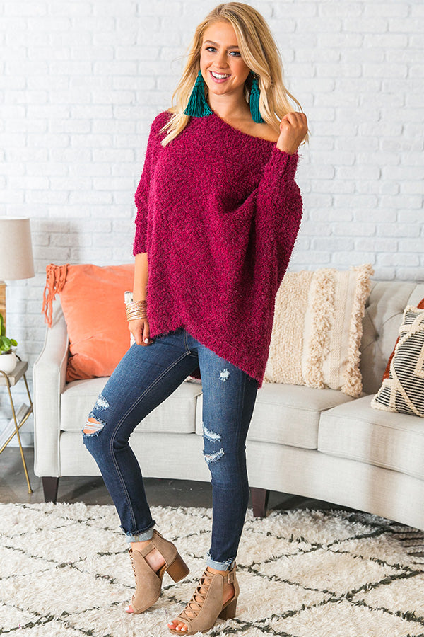 This fuzzy popcorn knit tunic sweater has a relaxed mock neckline (that can be pulled off of one shoulder), quarter-length dolman sleeves & an ultra soft eyelash knit bodice with a high-low hem. Accessorize & add your favorite denim, for a snuggle-worthy look you will be eager to cuddle up in.