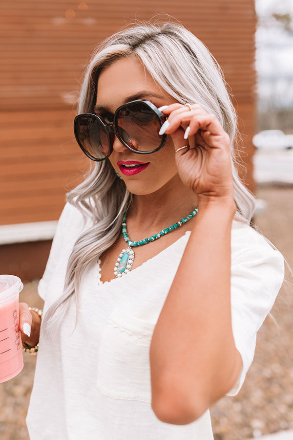 You are sure to look "upside chic" when you accessorize with these adorable sunnies featuring oversized rounded frames patterned with a tortoiseshell print and dark ombre tinted lenses!
