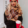 Upstate Cozy Plaid Blanket Scarf In Tan