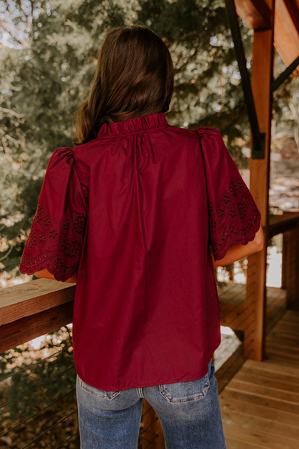- Bring sweet vibes to your OOTD with this darling top! With its ruffled neckline and eyelet accents, it's all about pretty little details.