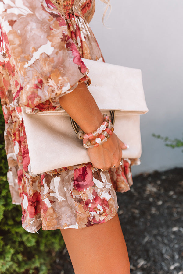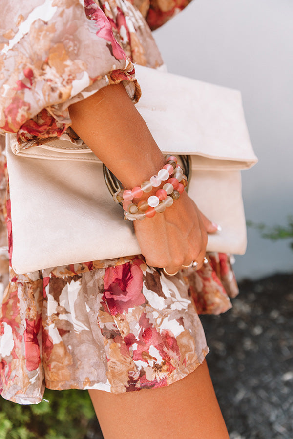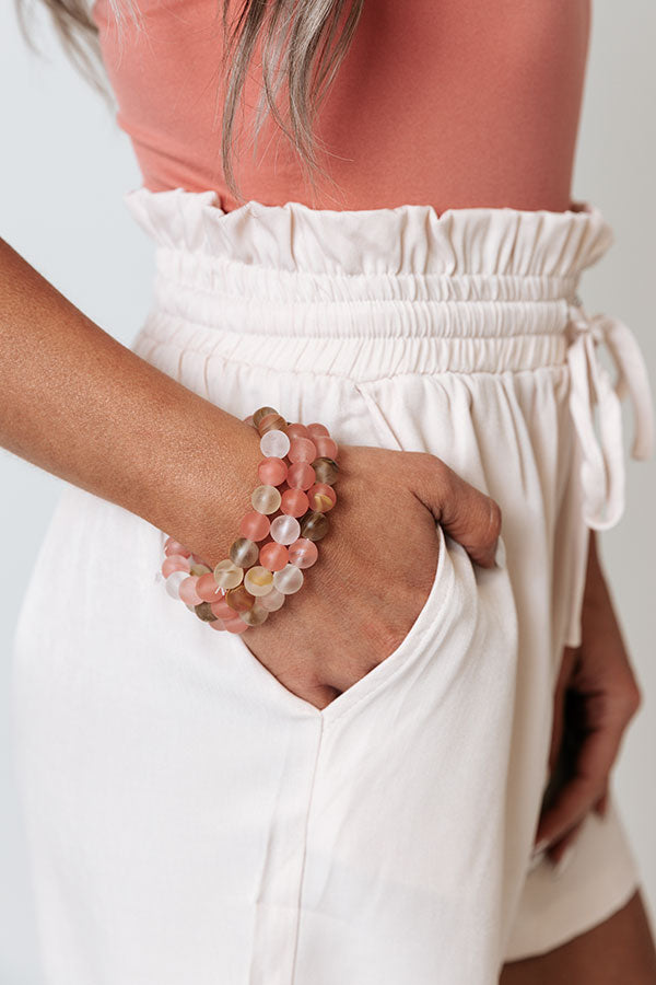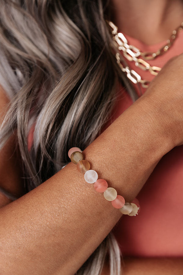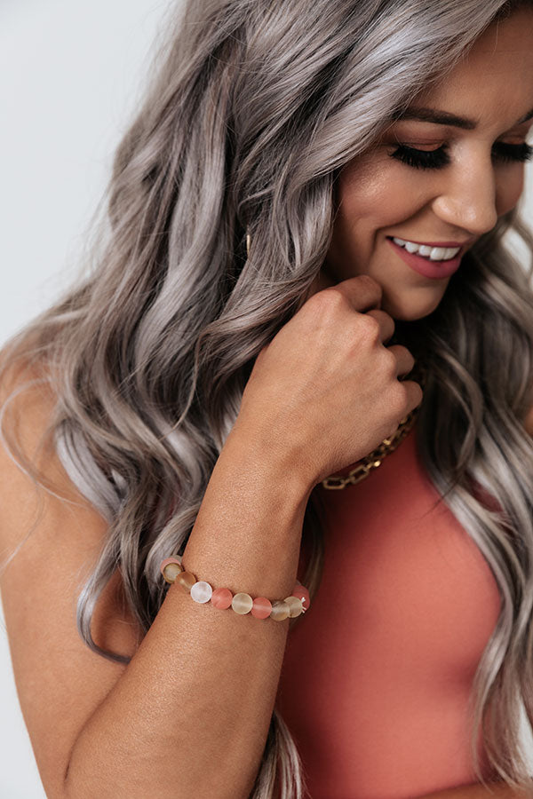 You are sure to look like a total babe when you add this adorable bracelet to your arm candy stack! It features a stretchy band with pink, white, and neutral semi precious beads!