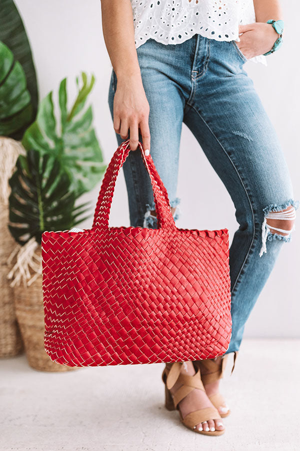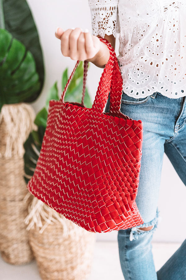 Uptown Bliss Woven Tote In Red