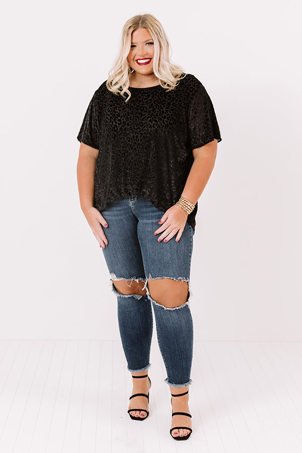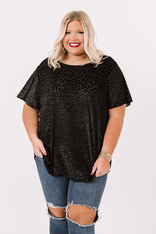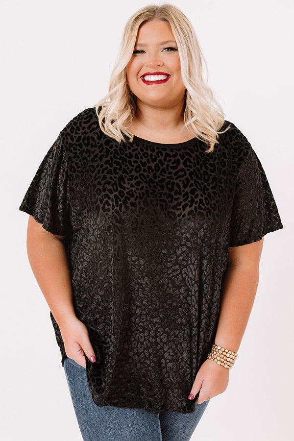 Uptown Brunch Velvet Burnout Top In Black Curves