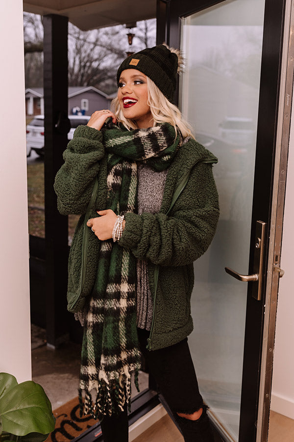 Upgrade your street style with our adorable 'Uptown Manhattan' scarf featuring ultra soft lightweight material patterned with a bold dark green, black, and cream hued plaid print and long fringe trim detailing!