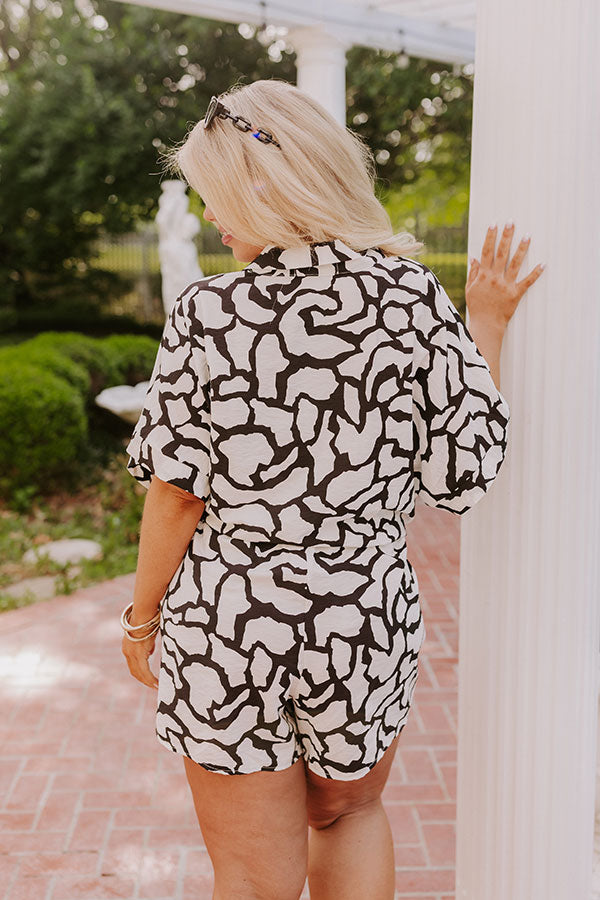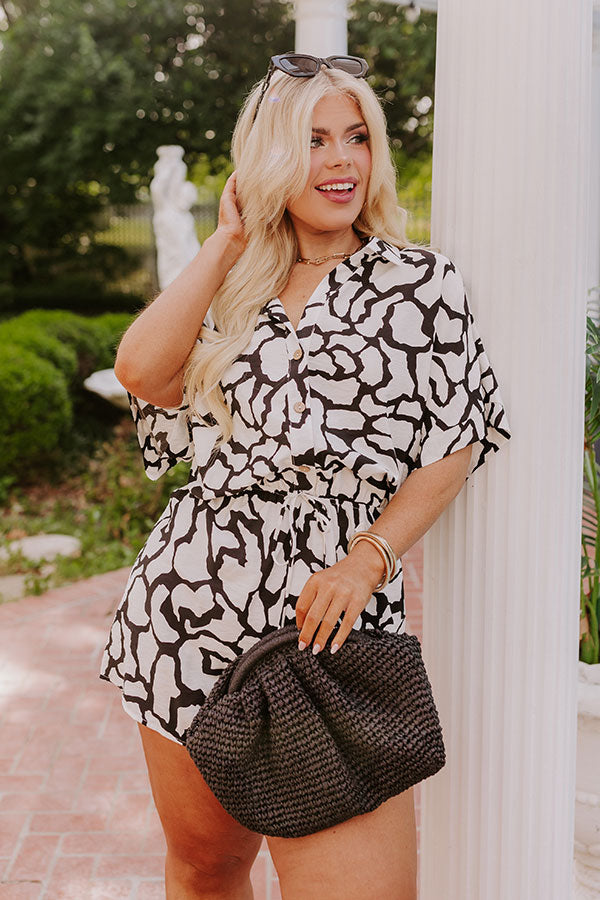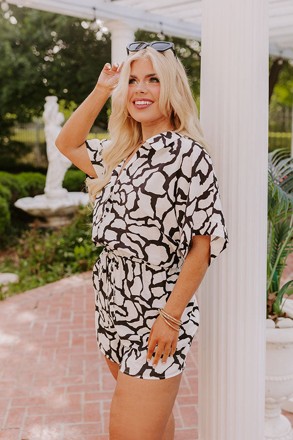 - Explore vibrant city life in this chic romper! Perfect for effortlessly charming style, its collared neckline, trendy crackle print, and cinched waist will flatter your figure while shining a spotlight on your fabulous fashion sense. Prepare to turn heads as you make your way downtown in this piece of stunning urban style.